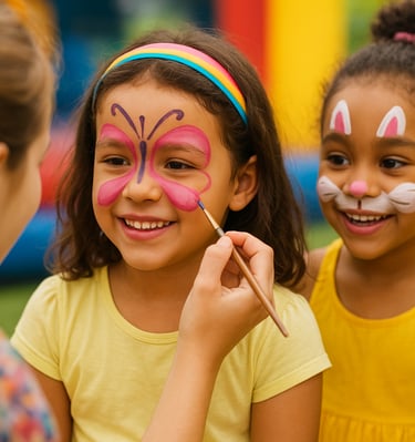 Oferecemos brincadeiras, gincanas e oficinas criativas de arte e pintura facial.